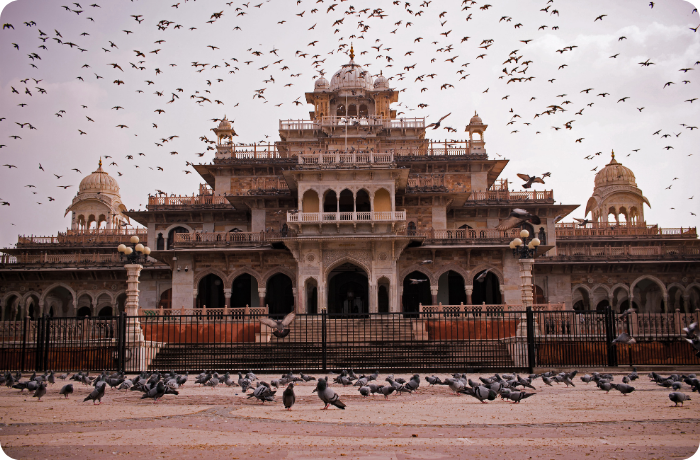 Located in the heart of Jaipur, the palace showcases royal architecture, museums, courtyards, and the famous Peacock Gate.